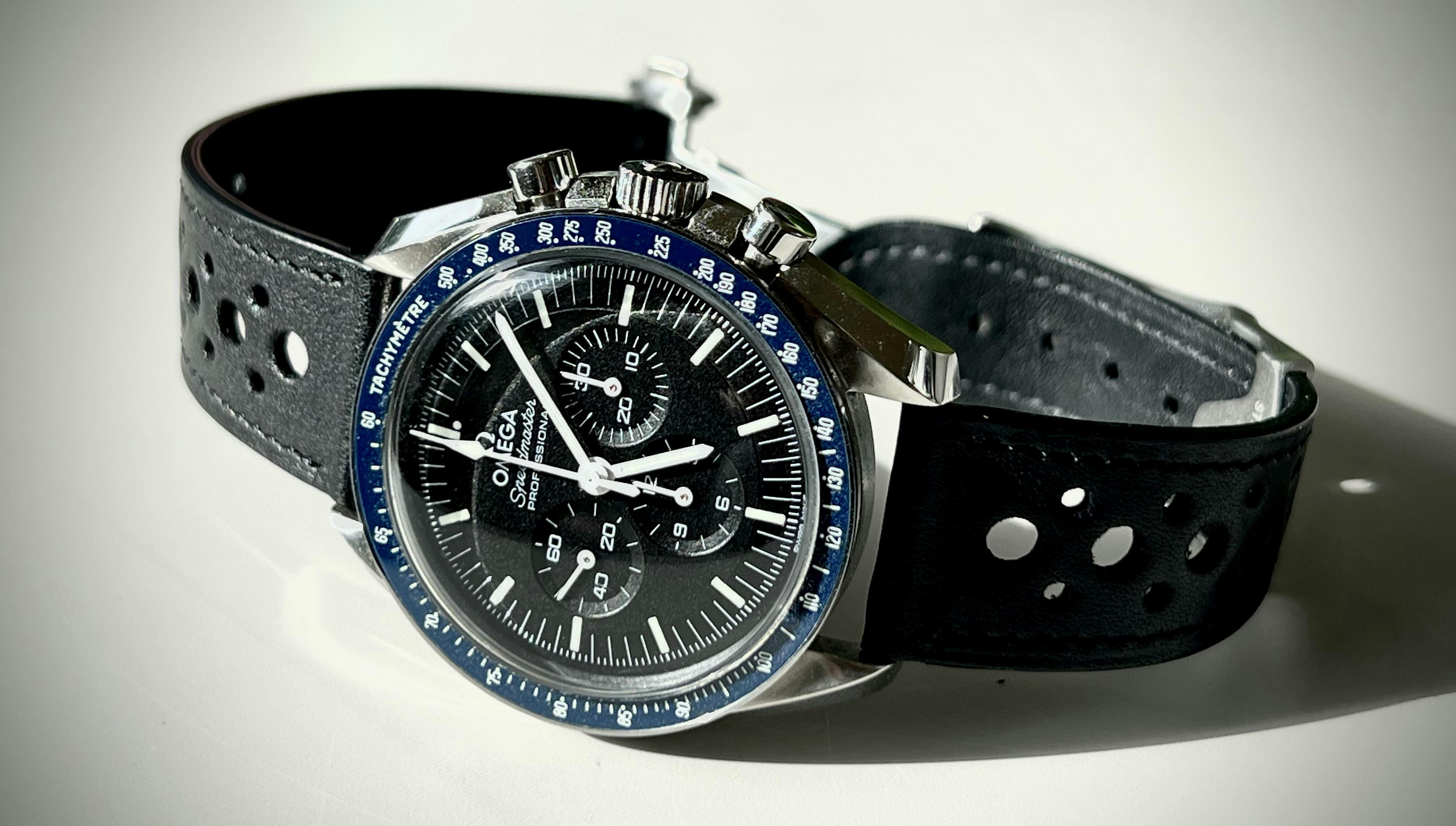 Bracelet rallye noir compatible boucle déployante omega